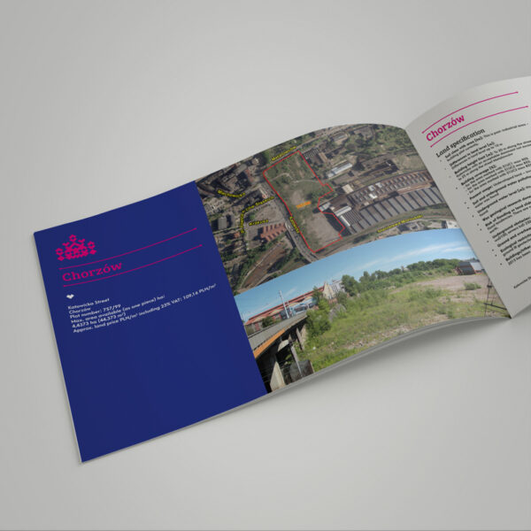 Projekt folderu prezentującego tereny inwestycyjne oraz folderu informacyjnego.