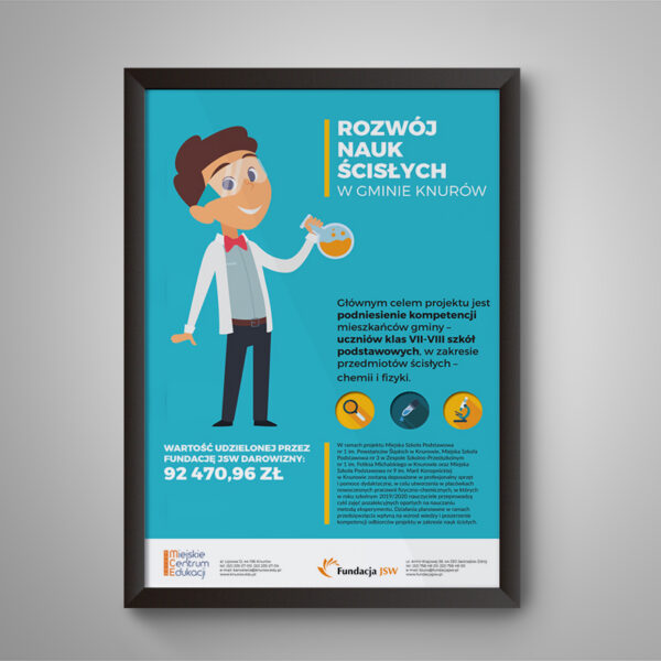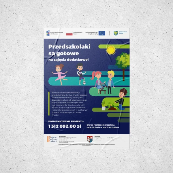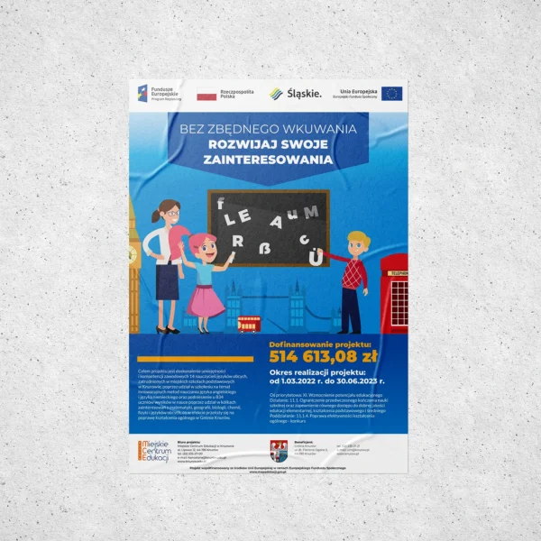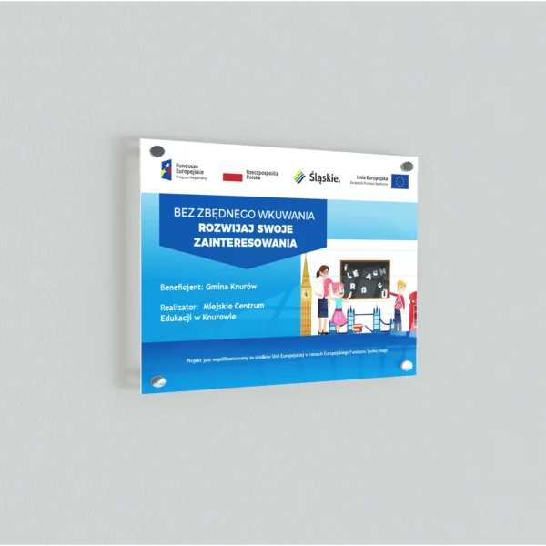 Projekty plakatów i tablic informacyjnych dla projektów unijnych.