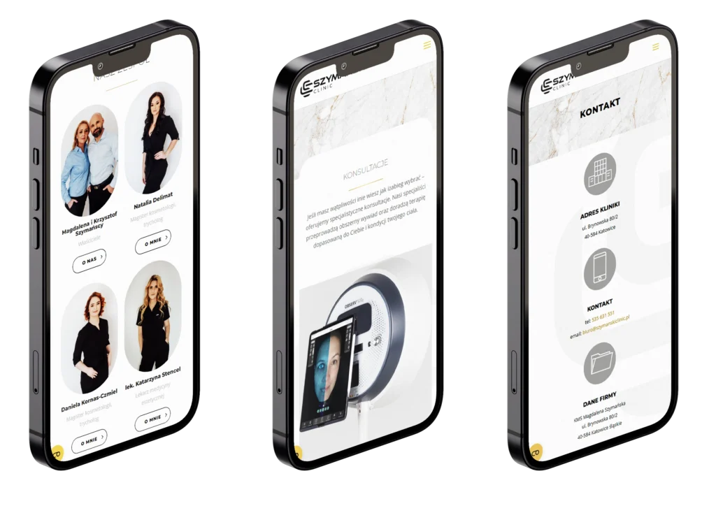 Dla Szymański Clinic zaprojektowaliśmy kompleksową stronę wizualną: logo oraz stronę internetową reklamującą rozbudowaną ofertę kliniki. Pacjenci mają możliwość wyszukiwania zabiegów po cechach ich dolegliwości i potrzeb.